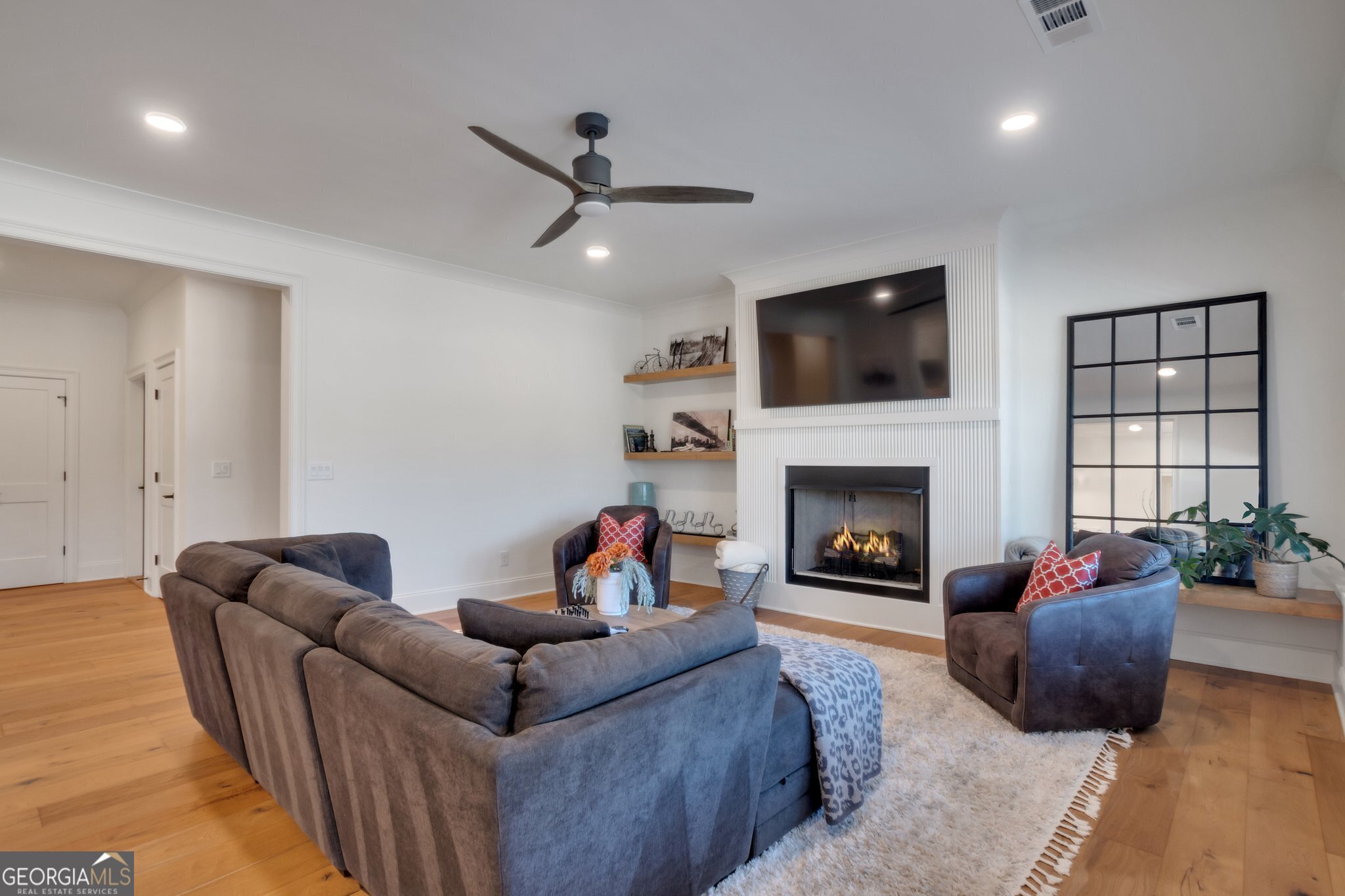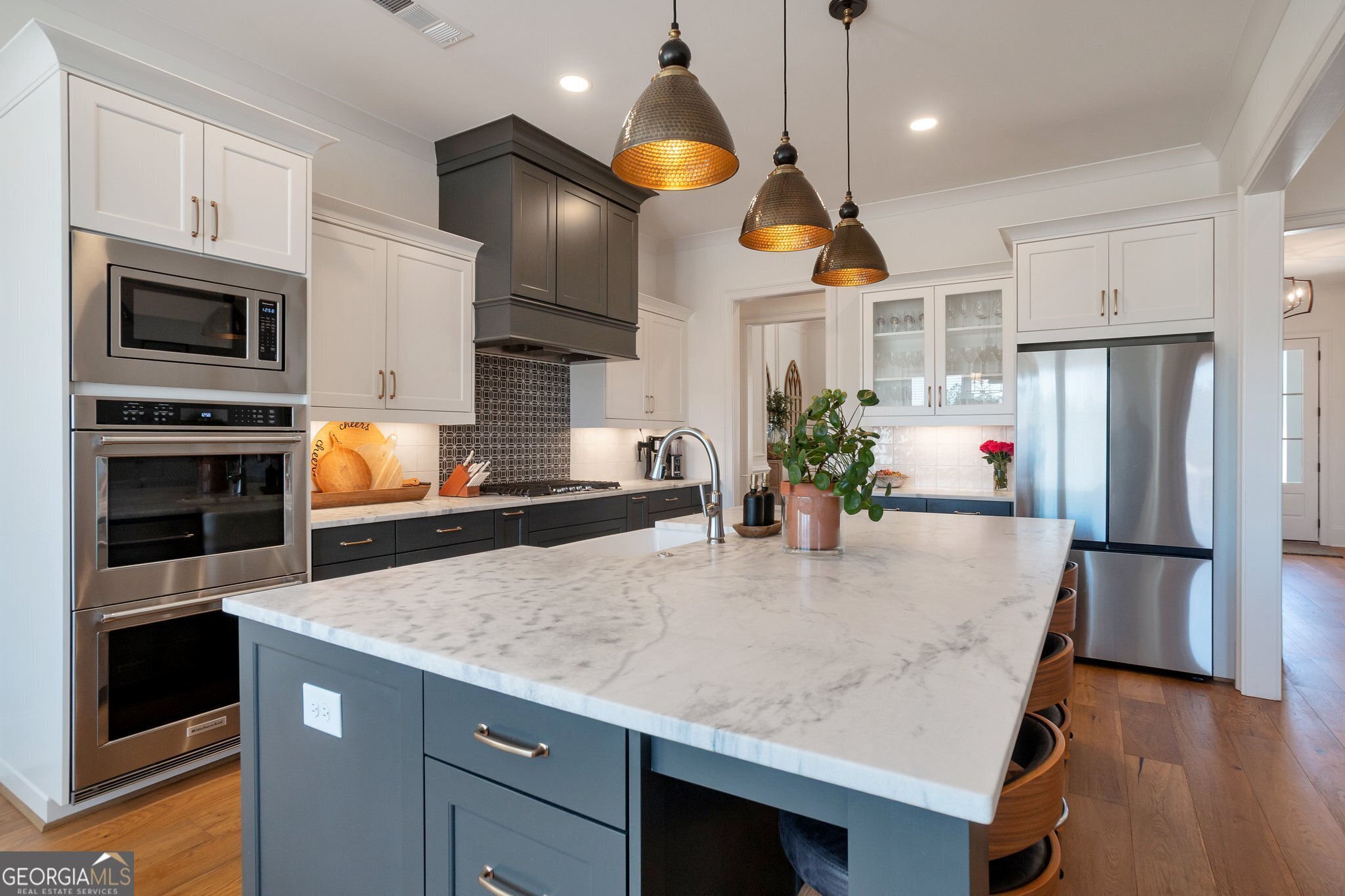Rare Opportunity! Exceptional DFW Ventures home with a Private In-Law suite. Discover the ideal setup for multigenerational living. The fully accessible terrace-level suite offers true independence and comfort with its own private entrance, a spacious living room with Fireplace and Floating shelves.There is a full Kitchen with an island , a private bath with walk in shower and an oversized bedroom suite .Your guests will love the office and additional storage area also. A thoughtfully designed space perfect for extended family,long term guests,or anyone seeking privacy without compromising connection. Experience the epitome of luxury living at 908 Indigo Bunting Road, a home where comfort and grace intertwine seamlessly. From the moment you arrive, the generous driveway and welcoming front porch set the tone for the elegance within. Upon entering the home, you are immediately greeted by an abundance of natural daylight that floods through large windows in the formal Dining Room, creating a warm and inviting atmosphere. The sunlight dances playfully on the rustic wood floors and casts gentle shadows on the walls, enhancing the architectural features of the space. The heart of the home is its exquisite kitchen, a chef's delight boasting double wall ovens, a charming farm sink, sophisticated pendant lighting, a spacious pantry with custom shelving, and under-cabinet lighting. The gourmet Kitchen stands as a centerpiece equipped with top-of-the-line Kitchen Aid appliances and sleek marble countertops, ideal for both intimate dinners and grand entertaining! This culinary haven seamlessly flows into the Family Room, offering a breathtaking vaulted ceiling adorned with white beams and a cozy stone fireplace framed by built-in cabinets and floating shelves. The main level hosts the owners' suite, presenting breathtaking golf course view, a spa-like bath with a luxurious soaking tub, dual vanities, and an expansive shower, complemented by a perfectly organized closet with custom shelving. For guests, a privately situated bedroom on the main floor ensures comfort and privacy. Functionality abounds with an oversized mudroom including benches for seating, hooks for coats, and cubbies for personalized storage and a conveniently located laundry room with utility sink completes the main level. Venture upstairs to discover two additional private bedroom suites that epitomize both comfort and style! With spacious closets and classic white bathrooms, these rooms provide a serene oasis where you can unwind and recharge! Ample storage space is flawlessly integrated into the design of this meticulous home. The basement transforms into an ideal in-law or teen suite, complete with its own Living Room featuring a fireplace perfectly accentuated by a beautiful white slat wall and floating shelves, a full contemporary kitchen with pantry, a large bedroom, a bathroom with large glass tiled shower, and an office or hobby room that you can tailor to your varying needs, along with even more storage! Outdoors, enjoy the covered screened-in porch with a wood-burning fireplace, perfect for serene evenings. The fenced yard offers security and privacy, while the three-car garage provides ample parking and storage space. Every aspect of this exceptional home has been thoughtfully crafted to create a home that is both beautiful and functional, creating a harmonious blend of sophistication and tranquility. Additionally, the home includes four wall-mounted TVs located in the owner's suite, screened porch, main living room, and basement living room as well as the Sonos sound bars currently installed and gas grill on the deck offering a ready-made setup for entertainment in multiple areas of this home! Exterior and Interior of home was recently painted.